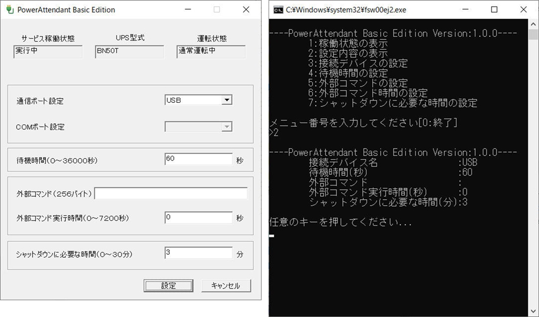 接続インタフェース UPSとの接続:USB/RS-232C
